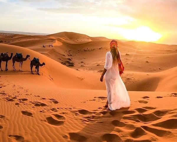 The 3 days from Fez to Marrakech by the desert road promises an unforgettable experience through the varied and fascinating landscapes of Morocco. Departure from Fez, a city full of history and culture. You will head south passing through picturesque landscapes and traditional villages. Your first stop will be Merzouga, where the golden sand dunes of Erg Chebbi await you for a camel adventure and a magical night under the stars in a nomadic camp.