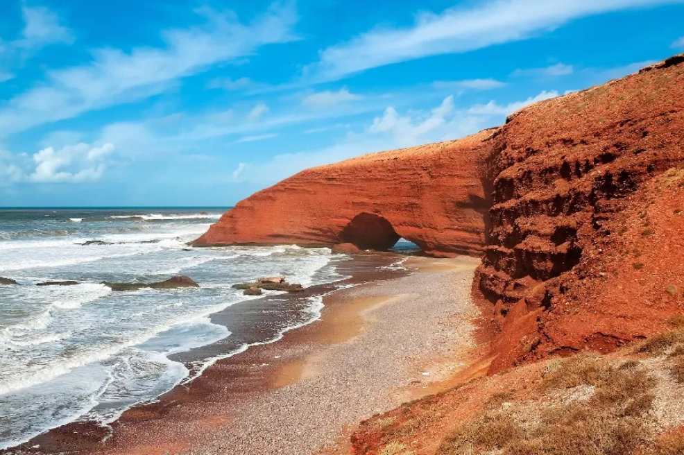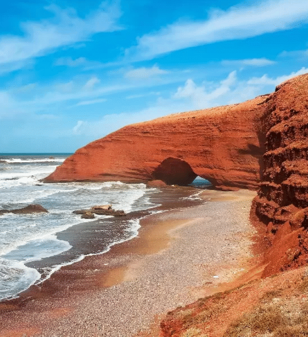 As you wake up in your hotel room. The soft, soothing sound of the nearby beach invites you to enjoy a relaxing day. After enjoying a delicious breakfast. You leave for the first stop of your day: the famous Legzira beach, located south of Agadir. This beach is renowned for its impressive natural arches that stand majestically along the shoreline. Take a leisurely stroll along the beach to admire these spectacular rock formations. Capturing unforgettable memories of their beauty.